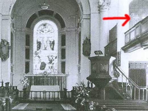Esta foto foi tirada em 1999 na Igreja Sefton em Merseyside, na Inglaterra, e foi tirada por um fotógrafo que estava fascinado pela estrutura antiga da igreja. O fotógrafo diz que não havia ninguém lá quando ele tirou a fotografia e teoriza que, devido ao vestuário do fantasma é a aparição de um dos ministros da igreja de voltou dos mortos.